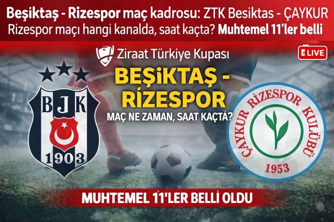 Ziraat Türkiye Kupası C Grubu’nda liderlik koltuğunda bulunan Beşiktaş, grup aşamasının 4. ve son haftasında sahasında Çaykur Rizespor’u konuk ediyor. Karşılaşma öncesi Beşiktaş - Rizespor maç kadrosu belli oldu. Peki Beşiktaş – Rizespor maçı ne zaman, saat kaçta ve hangi kanalda? İşte ZTK kritik randevusunun tüm detayları…