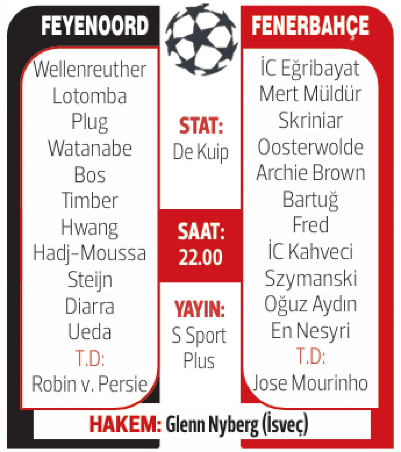 İŞTE FEYENOORD-FENERBAHÇE MAÇI MUHTEMEL 11'LERİ: