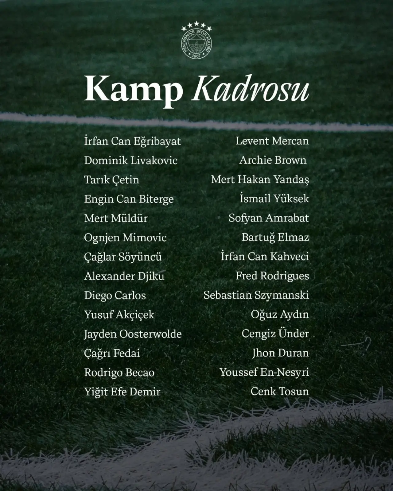 Sarı-lacivertliler 28 kişilik kadro açıklarken yeni transferlerden Tarık Çetin, Archie Brown ve Jhon Duran kamp kadrosunda yer aldı. Fenerbahçe'de 8 oyuncu ise kafileye dahil edilmedi.
