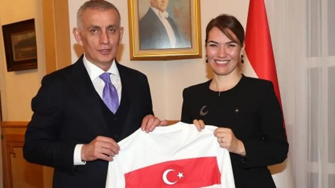 Türkiye Futbol Federasyonu (TFF) Başkanı İbrahim Hacıosmanoğlu, A Milli Futbol Takımı'nın UEFA Uluslar Ligi play-off turu rövanş maçı için gittiği Budapeşte'de Türkiye'nin Macaristan Büyükelçisi Gülşen Karanis Ekşioğlu'nu ziyaret etti.