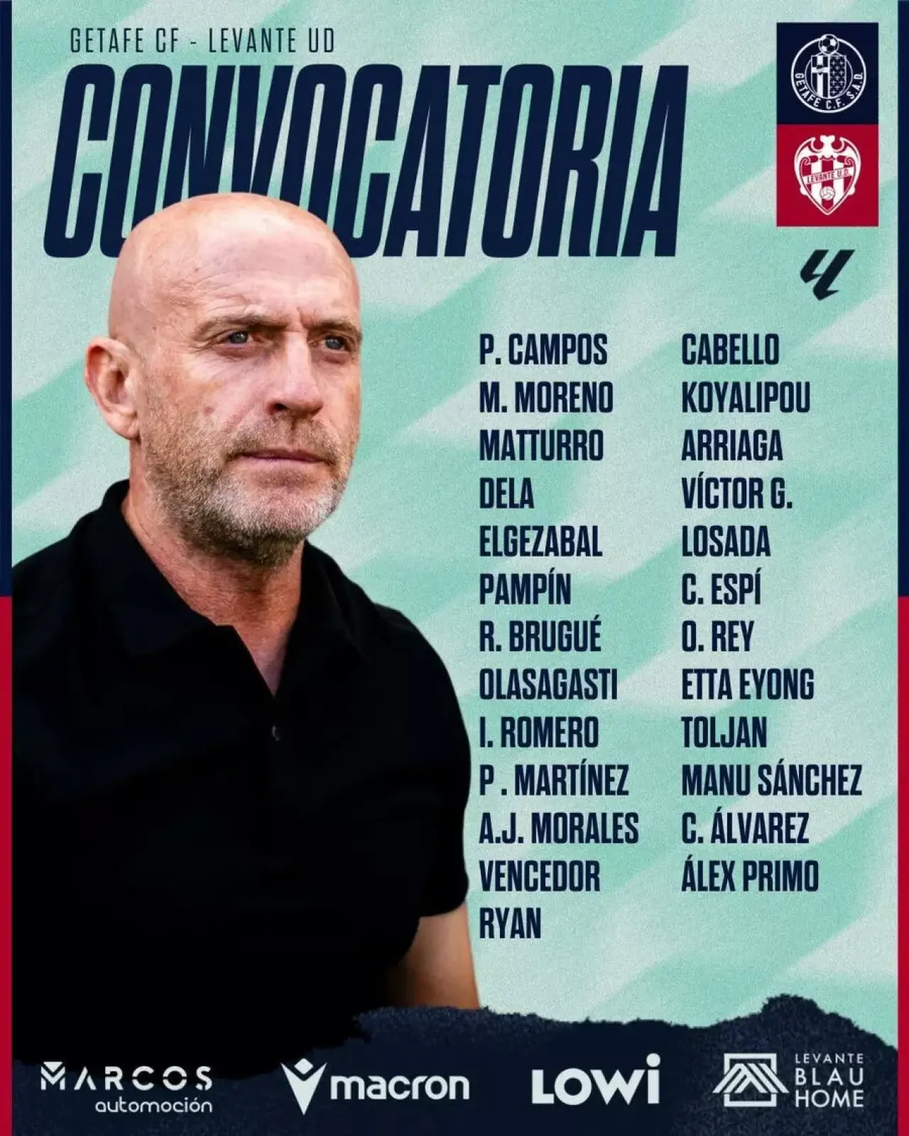 Levante, ligin altıncı haftasında Salı günü Ciutat de Valencia'da Real Madrid'e 4-1'lik ezici bir yenilginin ardından galibiyet serisine geri dönmeyi hedefliyor. Parla'nın teknik direktörü, Diego Pampín yerine sağ bek pozisyonunda Manu Sánchez'i ilk 11'de oynatacak ve Pablo Martínez'i ilk 11'e geri getirme ihtimali de var. Madrid teknik direktörü için en büyük haber, Ciutat de Valencia'da Real Madrid maçında kas sakatlığı geçiren Kervin Arriaga'nın kadroya dahil edilmesi.