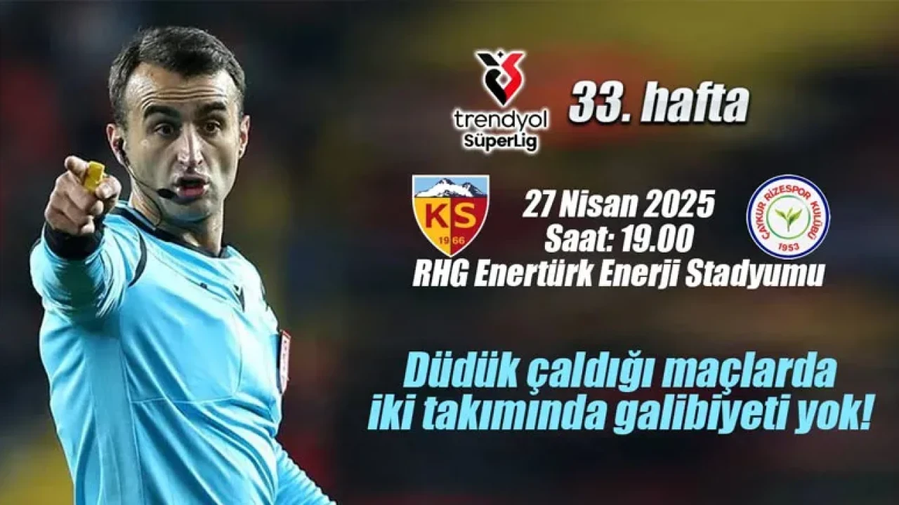 Deplasmanda Kayserispor ile karşılaşacak olan Çaykur Rizespor maçında Atilla Karaoğlan düdük çalacak. Yardımcılıklarını ise Samet Çiçek ve Candaş Elbil yapacak. Karşılaşmanın 4. hakemi ise Atilla Yılmaz.
