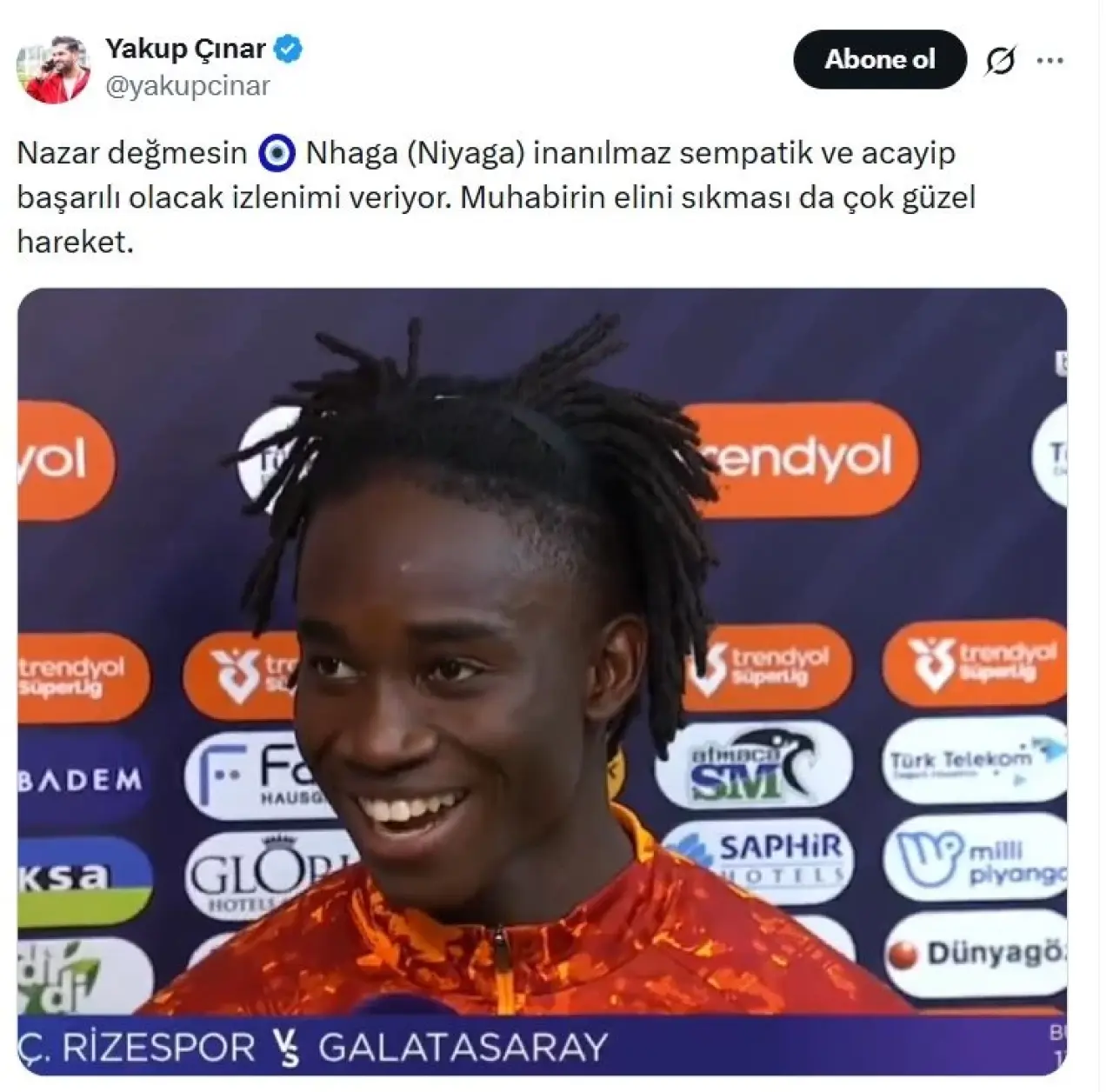 Süper Lig'in 21. haftasında Galatasaray'ın deplasmanda Çaykur Rizespor'u 3-0 yendiği karşılaşma sosyal medyada çok konuşuldu.