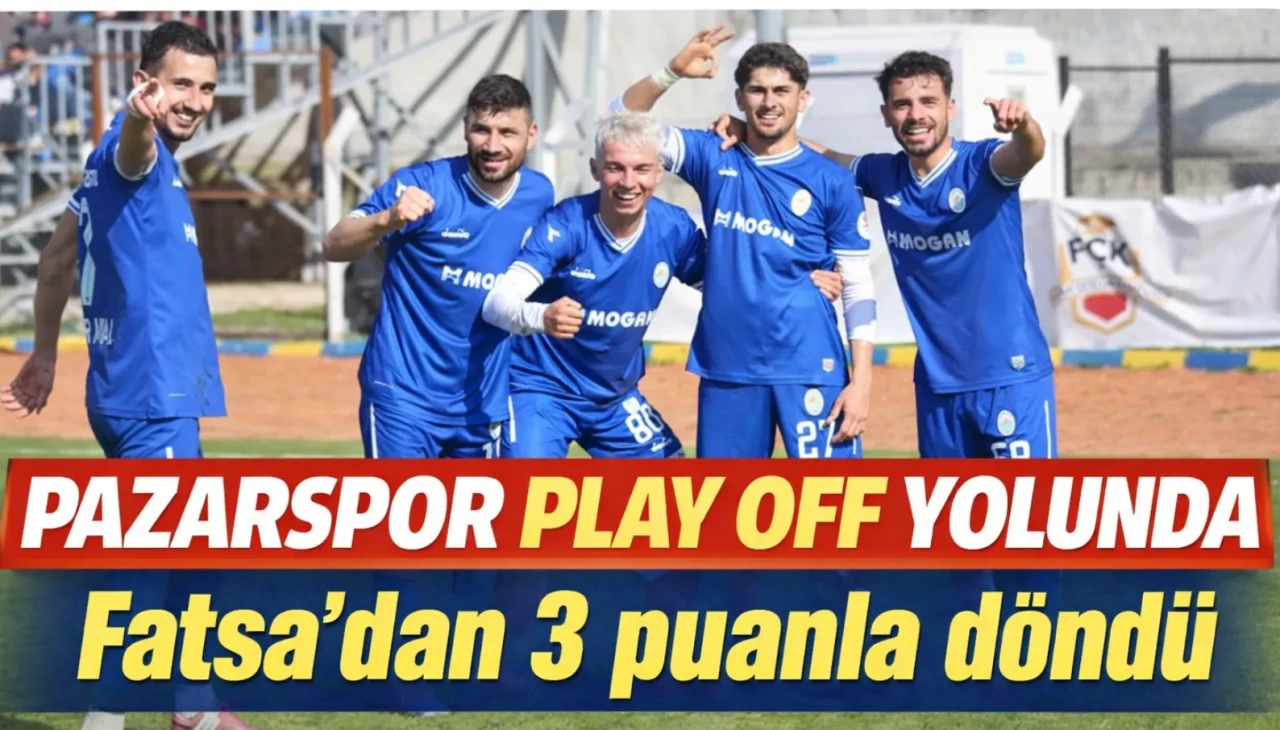 Ligin güçlü ekiplerinden olan ve ligde 3. sırada bulunan Fatsa Belediyespor'u deplasmanda Aziz Demir ve Yasin Polat'ın golleri ile 2-0 yenen Pazarspor puanını 31' e yükselti.