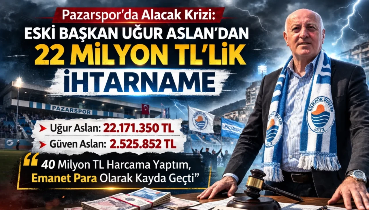 Pazarspor’da eski başkan Uğur Aslan’ın kulüpten olan alacağını tahsil etmek amacıyla noter kanalıyla ihtarname gönderdiği öğrenildi. Gelişme, camiada yeni bir tartışmanın fitilini ateşledi.