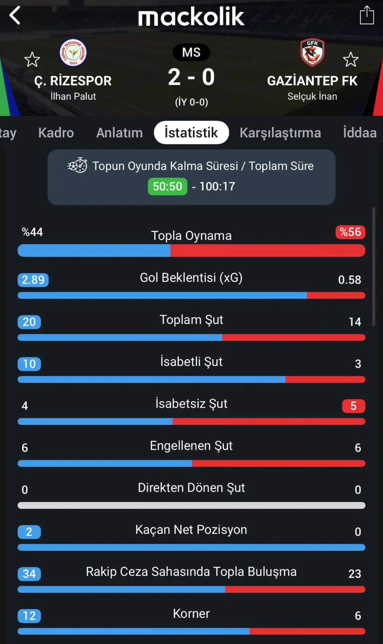 Trendyol Süper Lig'in 34. haftasında Çaykur Rizespor, Gaziantep FK'yi ağırladı.