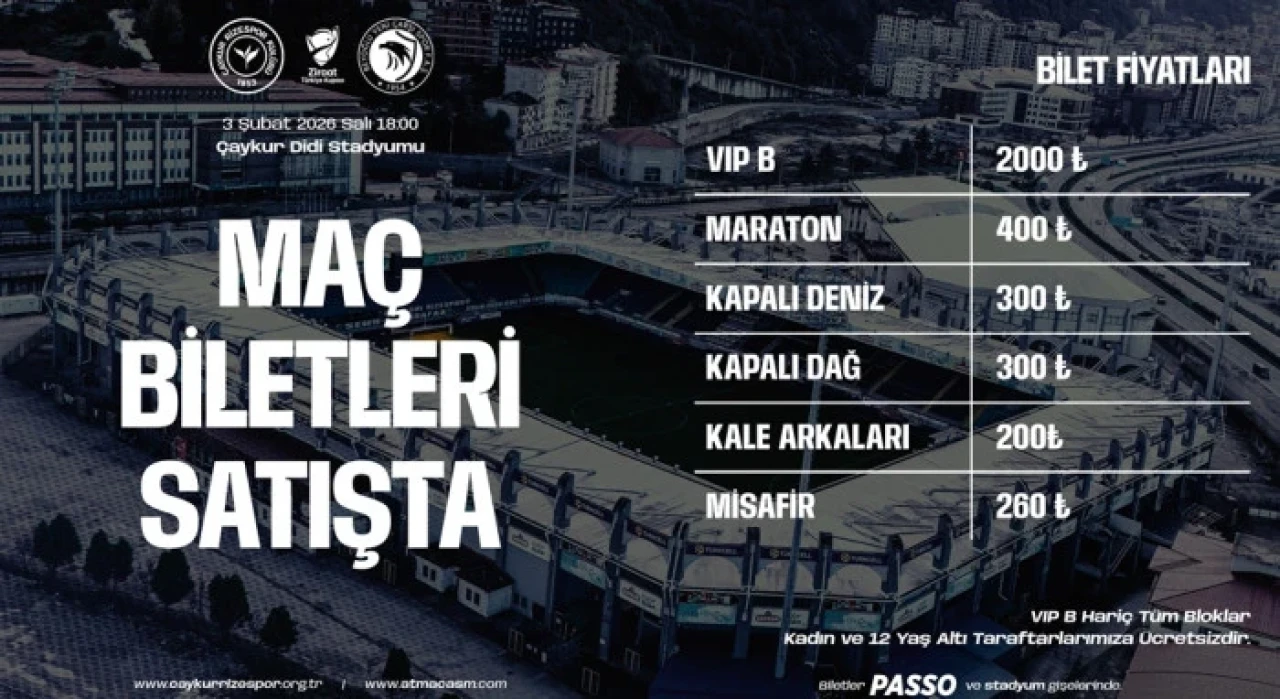Çaykur Rizespor – Beyoğlu Yeni Çarşı kupa maçının biletleri satışa çıktı.