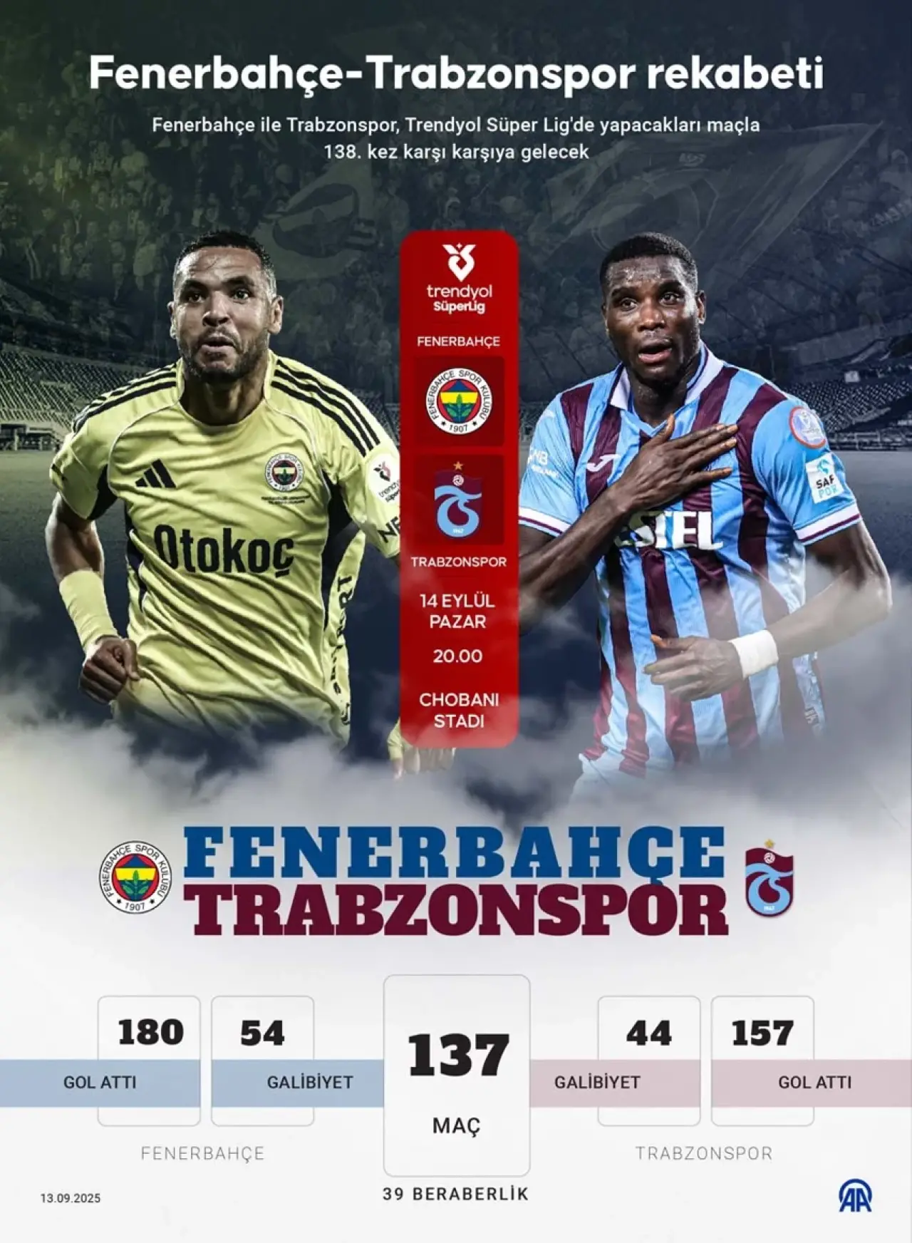 Ligde bir maç eksiği bulunan Fenerbahçe, 7 puan ve averajla 6. sırada yer alıyor. Trabzonspor ise 4 maçta aldığı 3 galibiyet ve 1 beraberlikle topladığı 10 puanla 2.sırada.