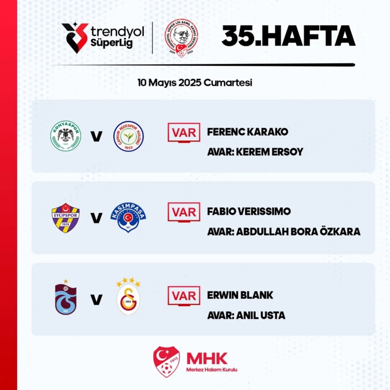 Süper Lig'de bugün oynanacak Trabzonspor-Galatasaray karşılaşmasında görev alacak VAR hakemi açıklandı.