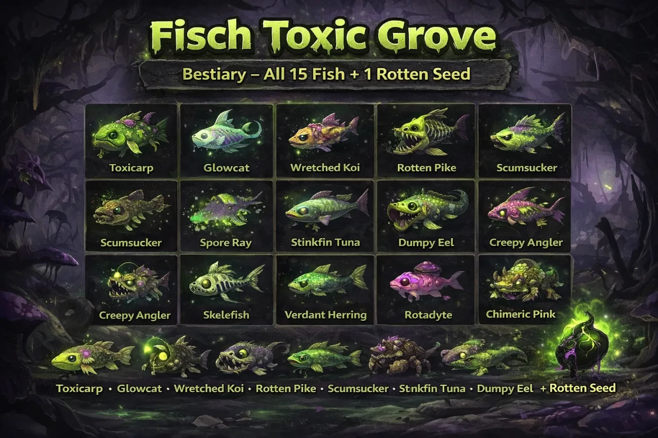 Fisch Toxic Grove Bestiary: List of Fish and How to Get There