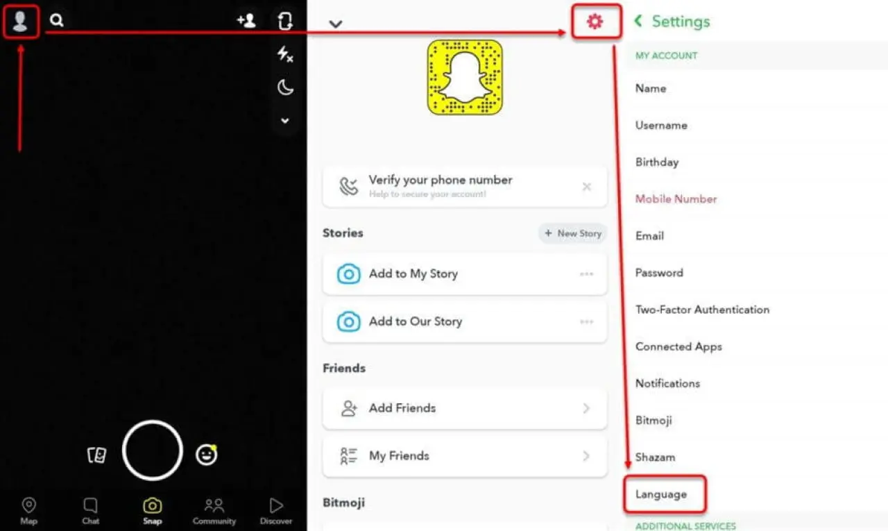 Bazı ios ve android kullanıcıları, snapchat uygulamasının dilini değiştirmek ister. Snapchat uygulamasının dili her zaman varsayılan olarak cihaz diliyle aynıdır. Örneğin akıllı telefonunuzun dilini İngilizce ayarlarsanız kullandığınız tüm uygulamaların dili de İngilizce olur. Bu nedenle uygulamalarınızın dilini değiştirmek istiyorsanız bunu uygulamalarınızın ayarlarından değiştirmelisiniz. Snapchat platformunda dil değiştirmenin 2 yolu vardır. Bunlardan birincisi şu şekildedir;