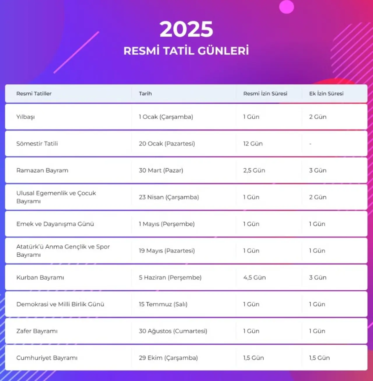 2025’te Toplam Kaç Gün Resmi Tatil Var?