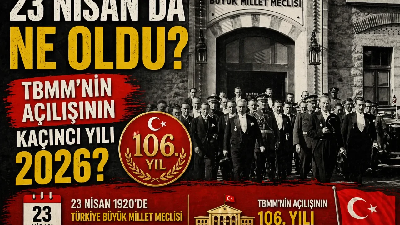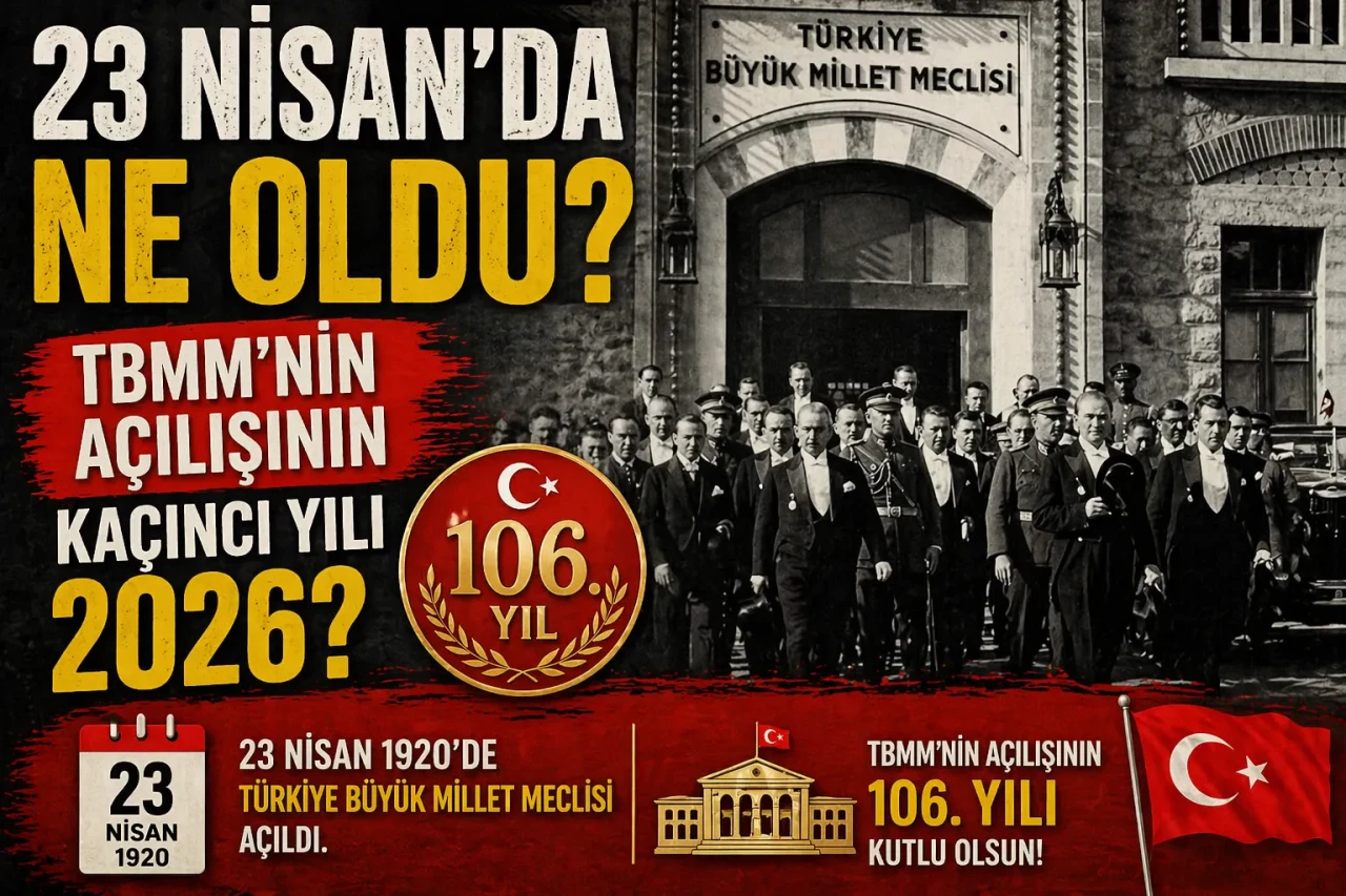 23 Nisan tarihi hem Türkiye Büyük Millet Meclisi’nin açılışının hem de bu önemli bayramın 106. yıl dönümünü simgeliyor. 23 Nisan 1920’de açılan Türkiye Büyük Millet Meclisi 2026 yılında 106. yıl dönümünü kutluyor. Bu tarih millet egemenliğinin resmen ilan edildiği gün olarak biliniyor. 2026 yılı itibarıyla TBMM’nin açılışının üzerinden 106 yıl geçti. Ulu önder Mustafa Kemal Atatürk’ün tüm çocuklara armağan ettiği 23 Nisan Ulusal Egemenlik ve Çocuk Bayramı’nınn bu sene 106. yılı kutlanıyor.