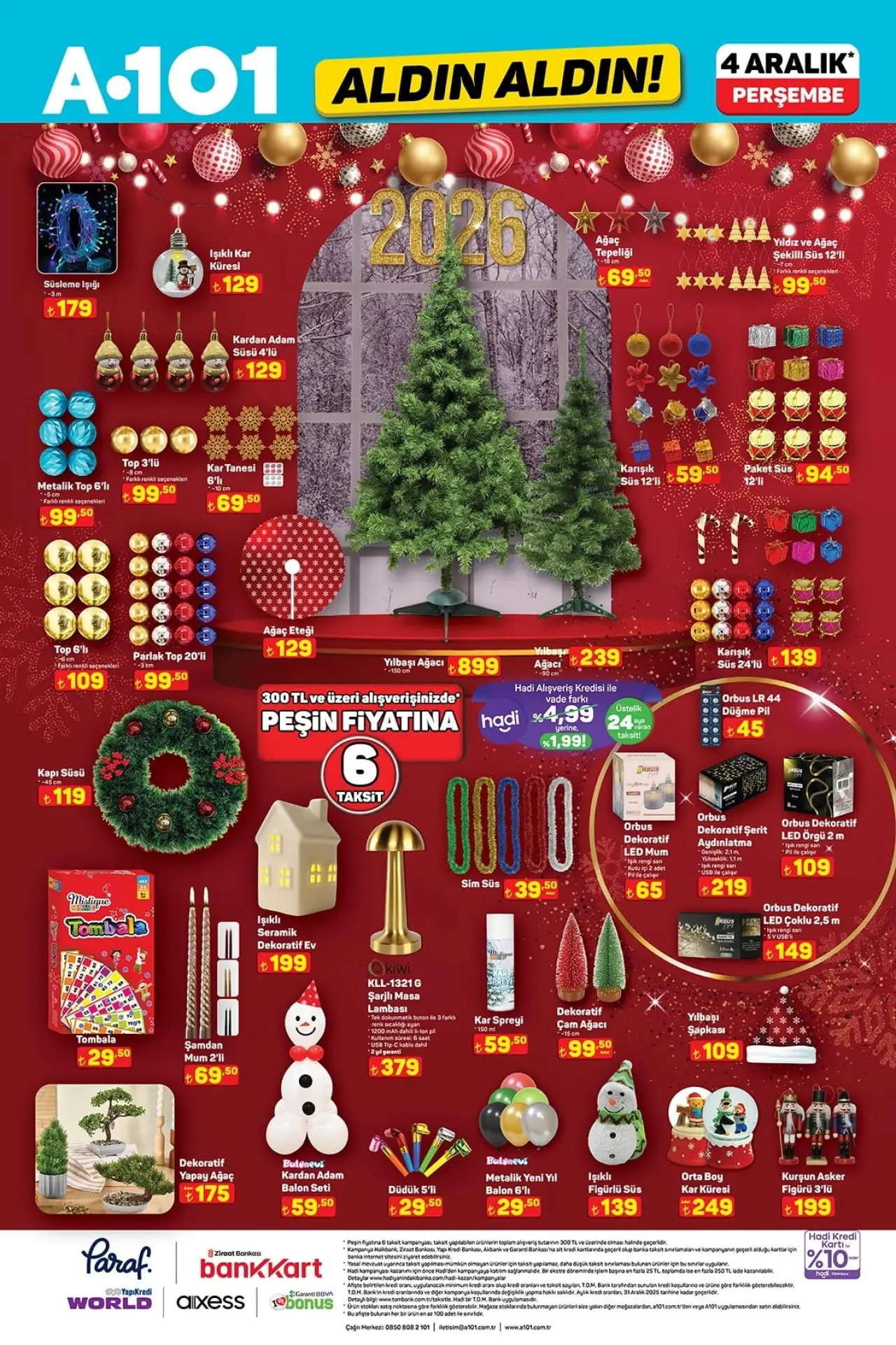 A101’in 4 Aralık’tan itibaren satacağı ürünler ve fiyatları yayınlanan kataloğa göre şöyle:
