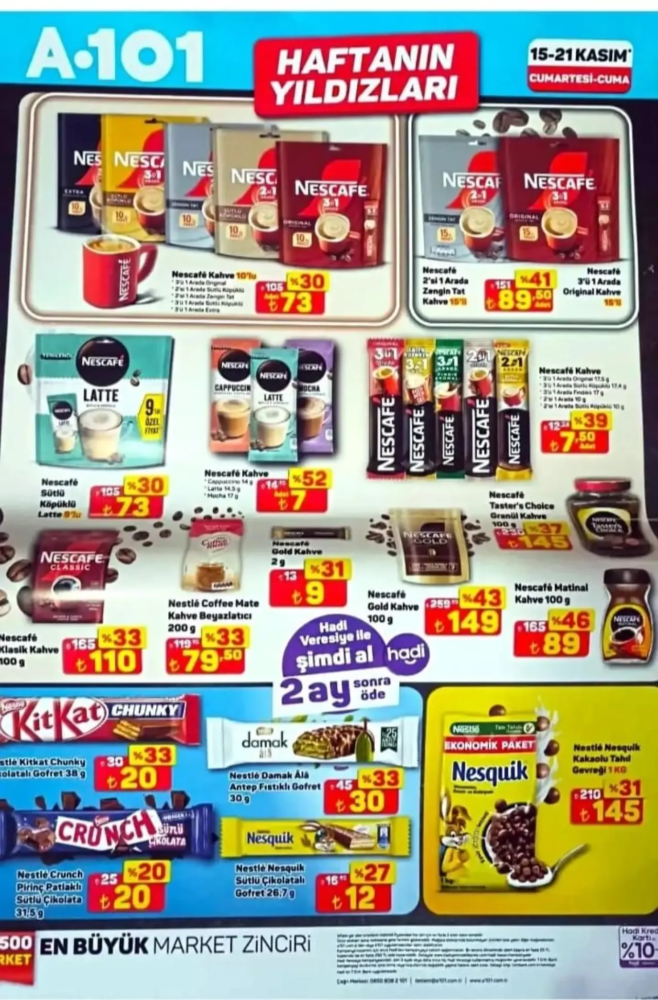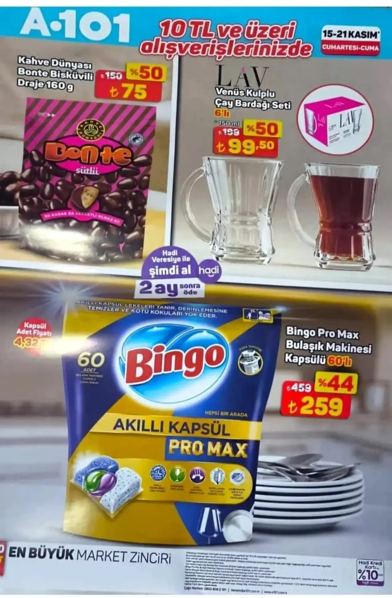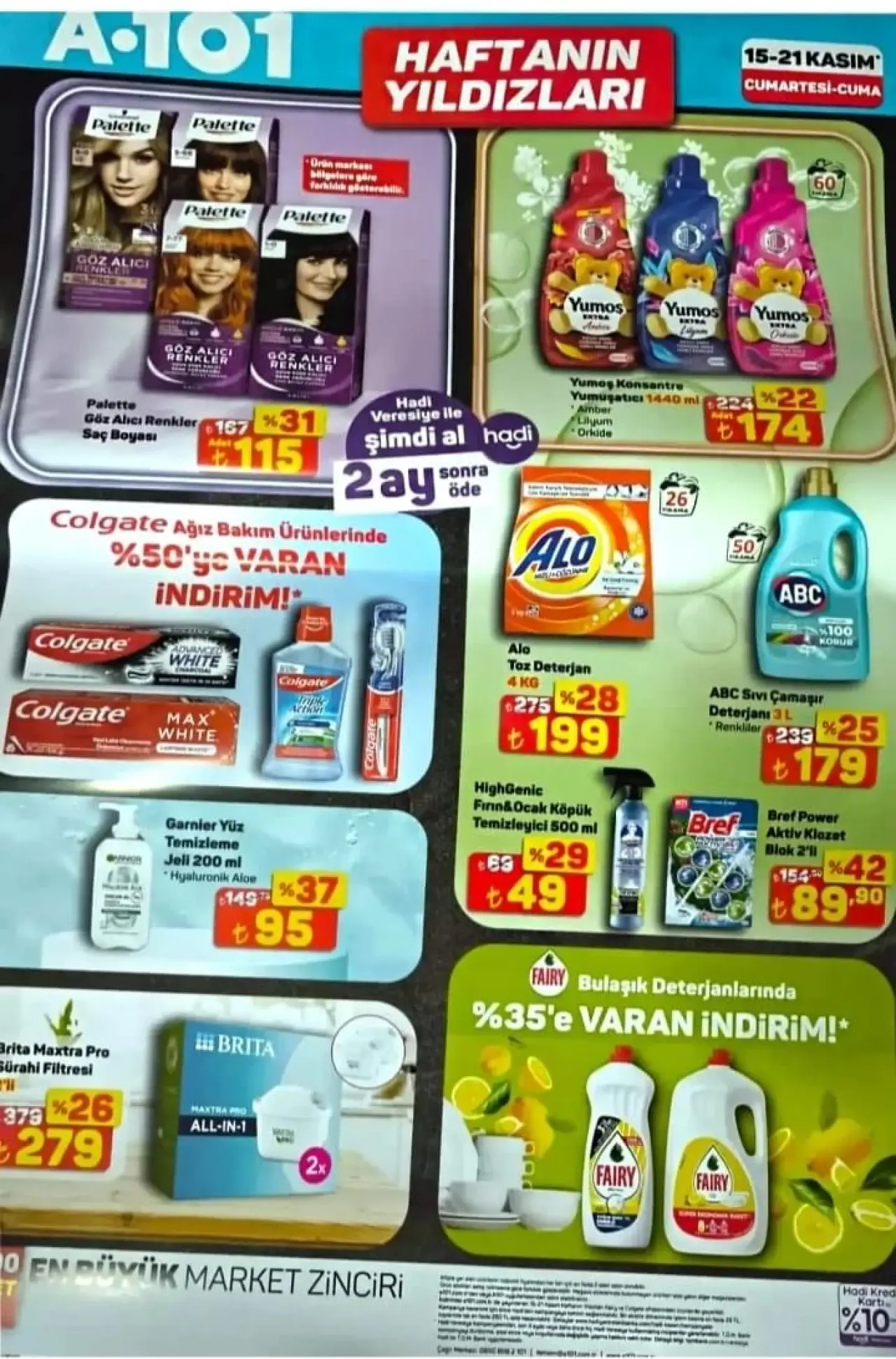 A101 markette kasım ayı indirimleri sürüyor. A101 market 15-21 Kasım 2025 haftanın yıldızları kataloğu yayımlandı. A101’de birçok indirimli ürün raflarda alıcılarını bekliyor. Peki, A101'de 15-21 Kasım 2025 tarihleri arasında hangi ürünlerde indirim var? 15-21 Kasım 2025 tarihlerinde A101’e hangi ürünler geliyor? A101 15-21 Kasım 2025 aktüel ürünler fiyat listesini sizler için hazırladık. İşte, A101 15-21 Kasım 2025 haftanın yıldızları kataloğu…