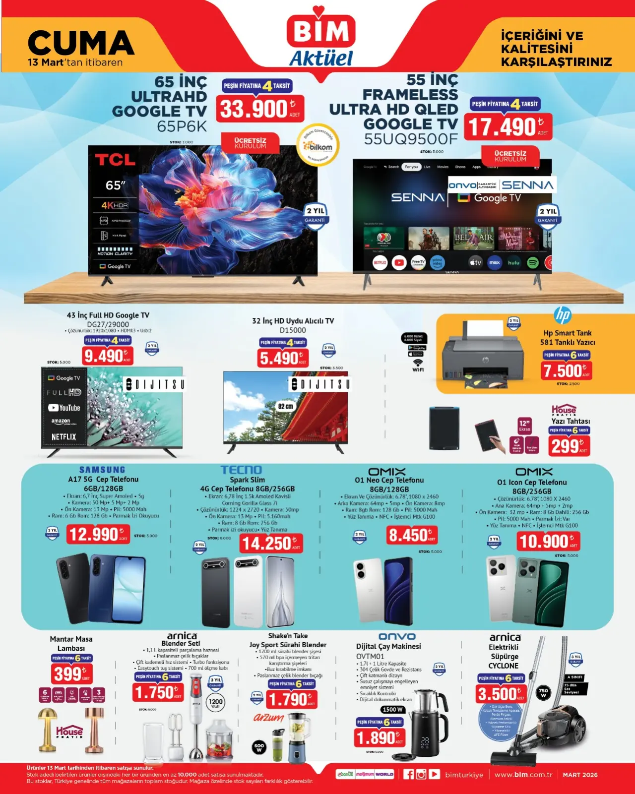 BİM 13 Mart 2026 kataloğunda detaylar Aktüel Ürünler'de! Bim Aktüel kataloğu gelecek hafta fırsatları kesinleşti ve gün yüzüne çıktı. Detaylara bakalım: