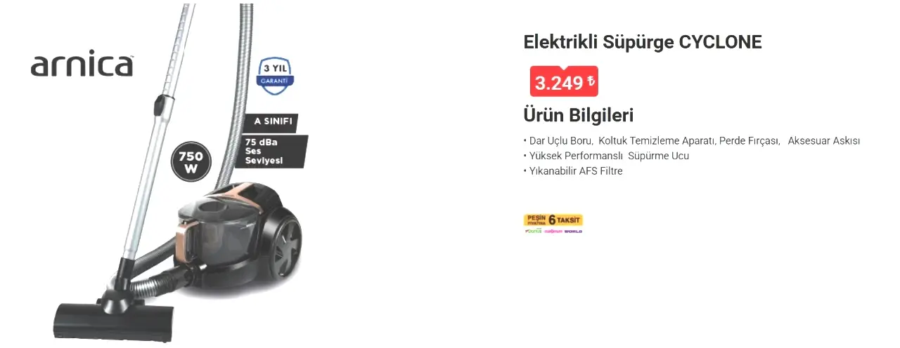 ARNICA ELEKTRİKLİ SÜPÜRGE CYCLONE