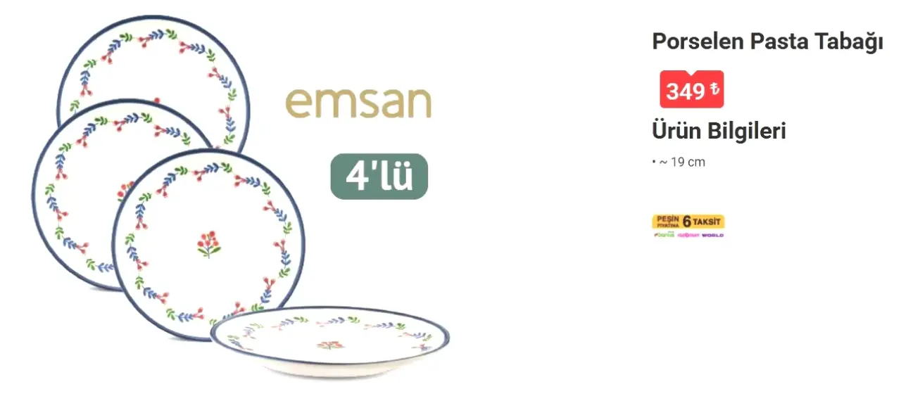 EMSAN PORSELEN PASTA TABAĞI 4’LÜ