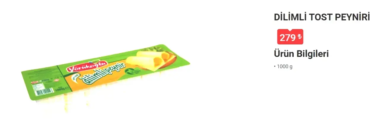 YÖRÜKOĞLU DİLİMLİ TOST PEYNİRİ 1000 G