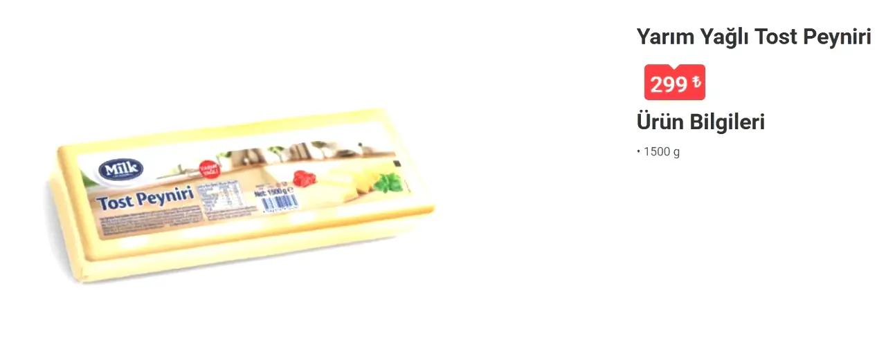 MILK YARIM YAĞLI TOST PEYNİRİ 1500 G