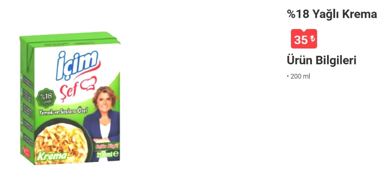 İÇİM ŞEF %18 YAĞLI KREMA 200 ML