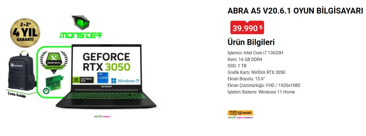Her hafta Çarşamba günleri müşterilerine özel fırsatlar sunan BİM, bu hafta Monster markasına ait Tulpar T6 V3.4.1 ve Abra A5 V20.6.1 oyuncu dizüstü ve Tulpar TD3 V1.1.2.3 oyuncu kasası getiriyor.