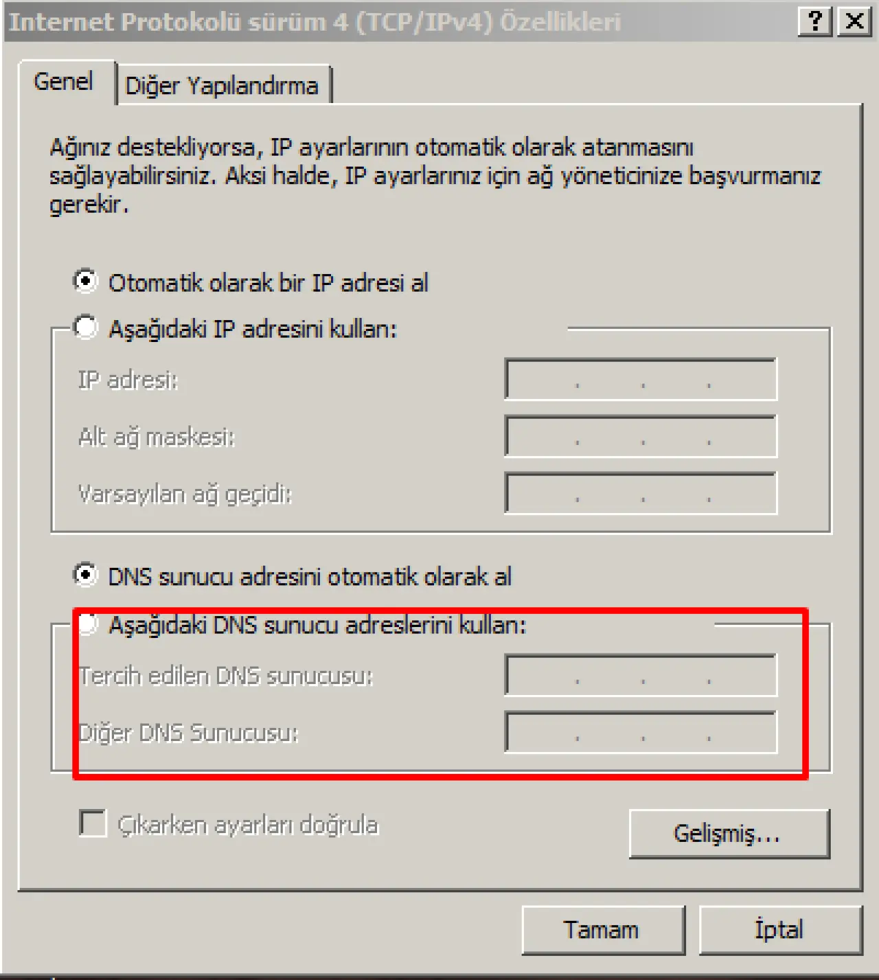 Aşağıdaki sunucu adreslerini kullan kutucuğunu seçin.