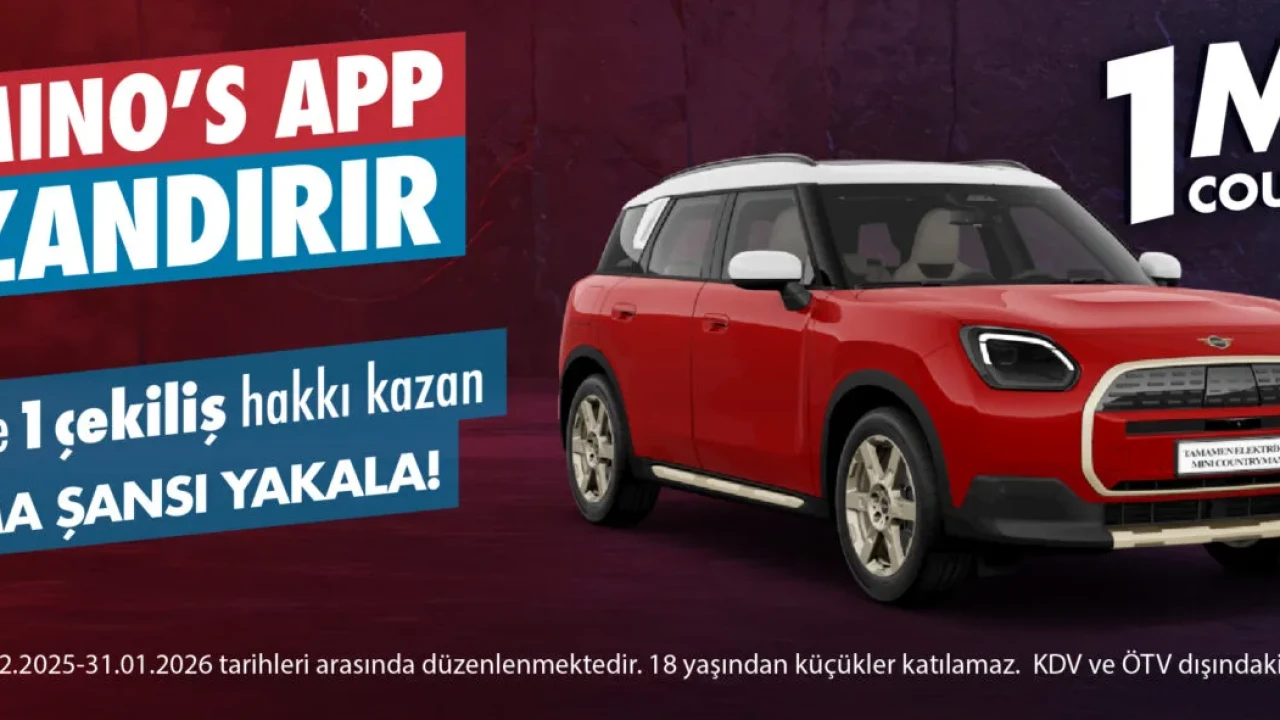 Domino’s, elektrikli otomobil ve son teknoloji elektronik ürünler içeren yeni kampanyasıyla dikkat çekiyor. 1 Aralık 2025 – 31 Ocak 2026 tarihleri arasında uygulama veya web sitesi üzerinden yapılacak alışverişlerde katılımcılar, Mini Cooper Countryman E ve iPhone 17 gibi değerli ödüller kazanma şansı yakalıyor. Kampanyaya katılım adımları ve merak edilen tüm ayrıntıları bu yazımızda bir araya getirdik.