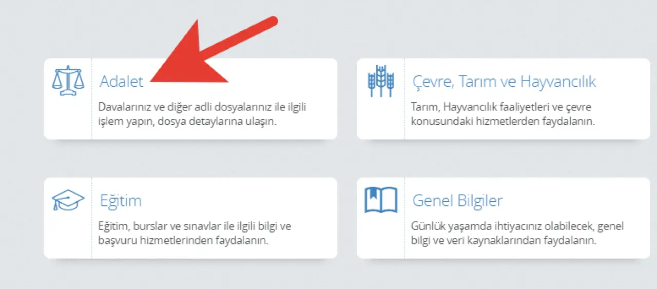 Ana sayfada yer alan arama kutusuna "sabıka kaydı" veya "adli sicil belgesi" gibi terimleri yazın.
