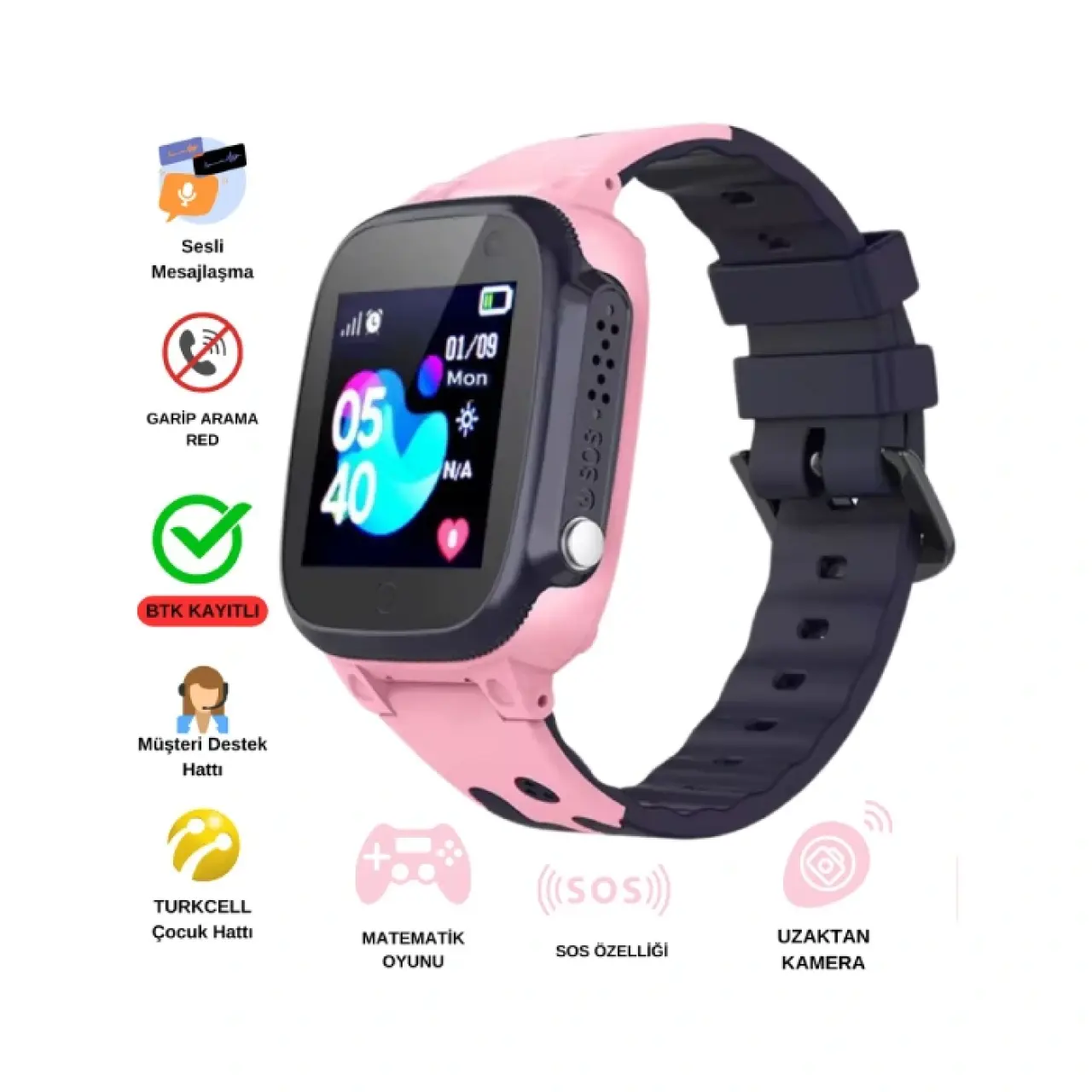 Z40 Akıllı Çocuk Takip Saati, GPS ve WiFi konumlama özellikleriyle çocuğunuzun konumunu yüksek doğrulukla takip etmenize olanak sağlar. Görüntülü görüşme desteği ve yüz tanıma teknolojisi sayesinde hem güvenlik hem de kullanım kolaylığı açısından öne çıkar. Estetik tasarımı ve pembe/mor renk seçenekleriyle çocukların severek kullanacağı bir modeldir. Batarya kapasitesi yoğun kullanımda gün sonuna kadar yetmeyebilir.