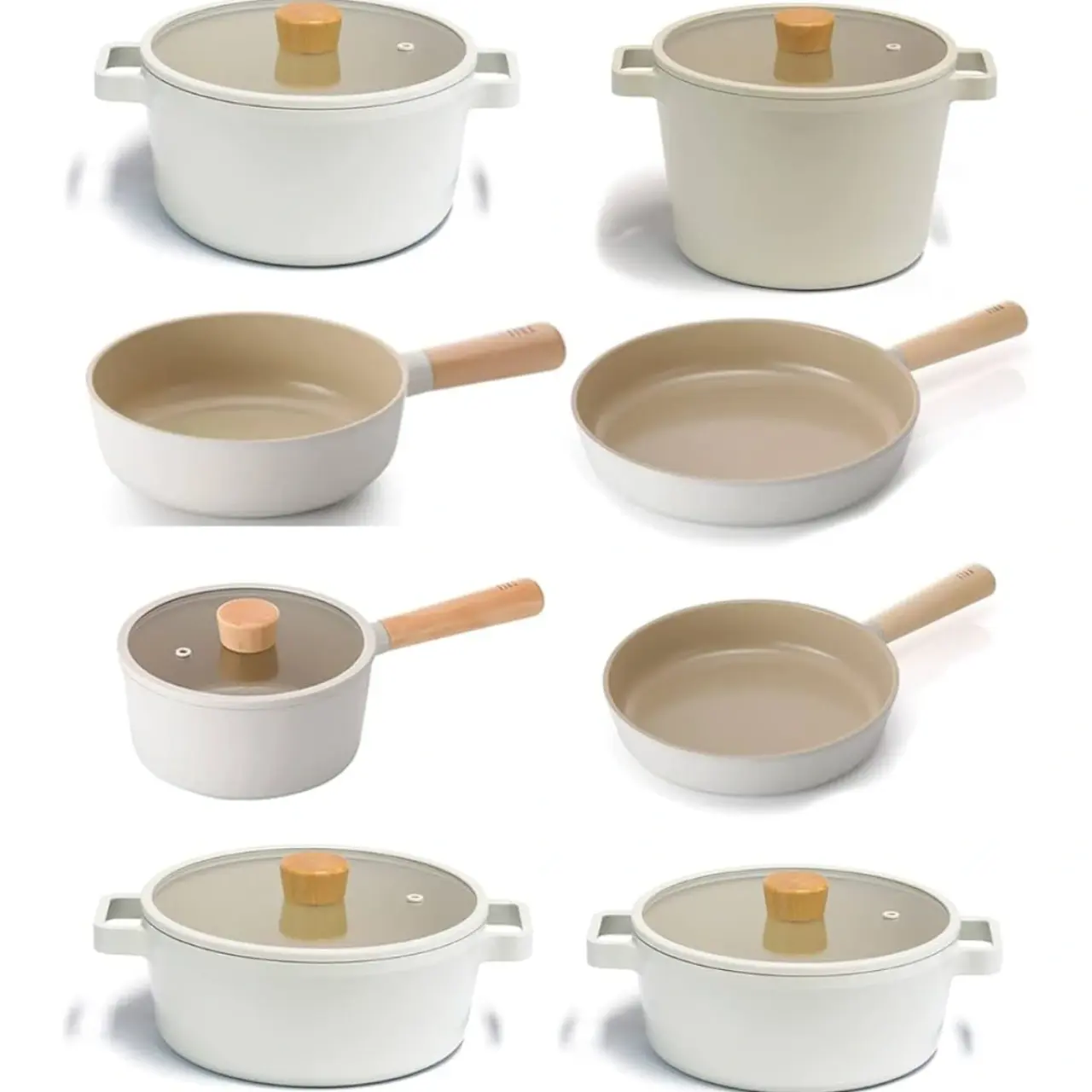 Neoflam Fika Tencere Setialüminyum döküm gövdesi ve seramik tabanlı Ecolon™ kaplaması sayesinde sağlıklı pişirme deneyimini garanti altına alır. Zararlı kimyasallar (PTFE, PFOA, kadmiyum, kurşun) içermeyen bu set, ısıyı eşit şekilde dağıtır ve yemeklerin hızlı pişmesini sağlar. Krem rengi ve minimal tasarımıyla mutfağınızda estetik bir dokunuş yaratır.