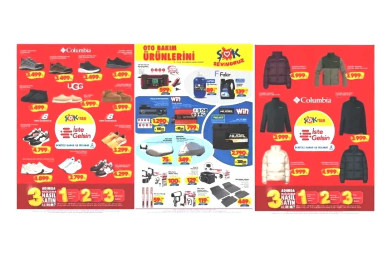 Bu hafta ŞOK markette öne çıkan ürünler arasında Columbia'nın montları ve Ugg'ın botları gibi kış sezonuna uygun kıyafetler bulunuyor. Araç sahipleri için Hugel marka aküler ve araç içi kayıt kameraları da listeye dahil edilirken, çocuklar için Barbie bebekler ile dev Pufu peluş oyuncaklar da dikkat çekiyor.