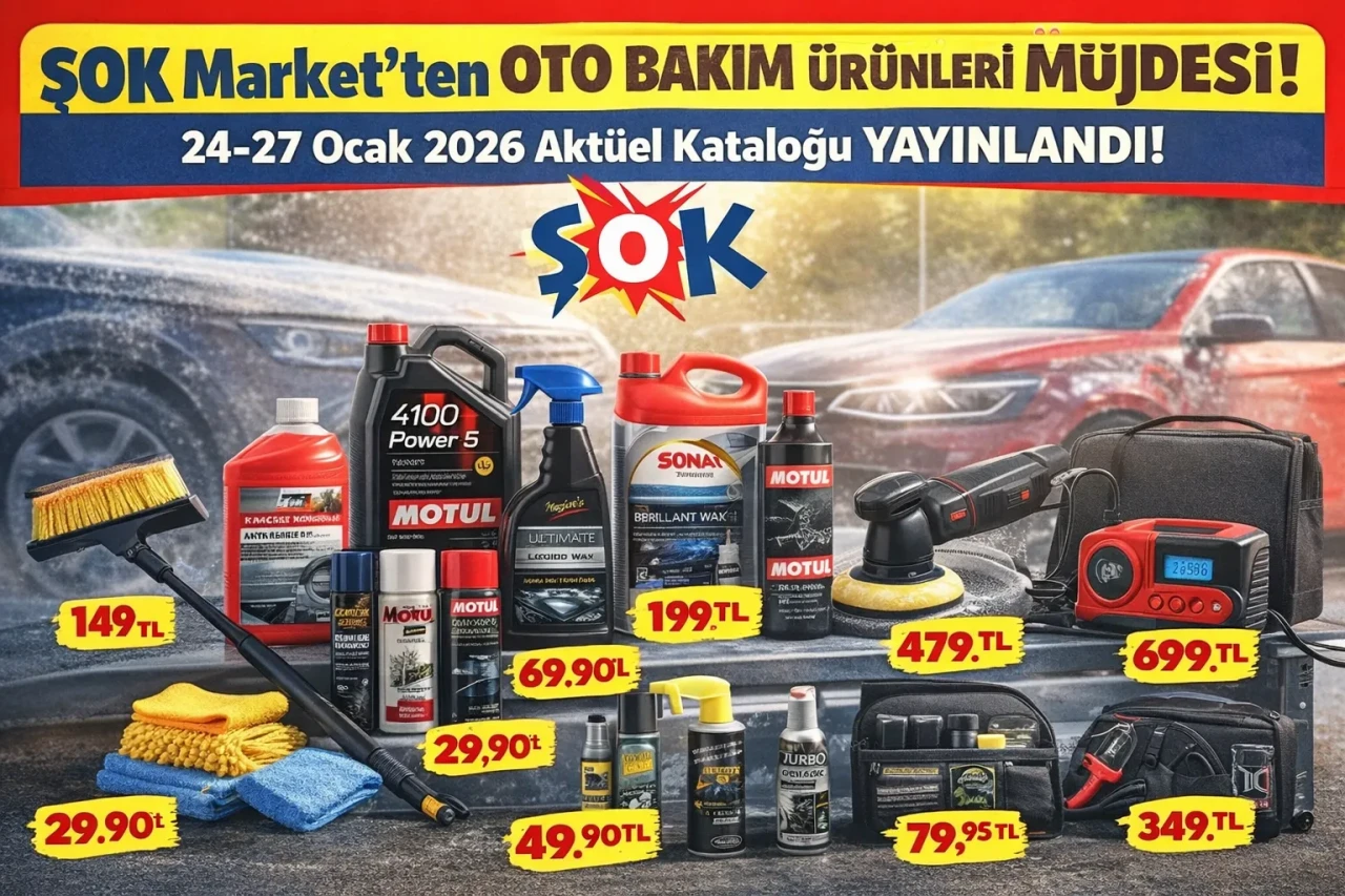 ŞOK’un yeni aktüel kataloğu, araç sahiplerine yönelik oto bakım ürünleri ile ev ve mutfak ihtiyaçları için geniş bir indirim yelpazesi sunuyor. Tüketiciler, 24-27 Ocak 2026 tarihleri arasında ŞOK market mağazalarından ve resmi kanallarından güncel fiyatları kontrol ederek kampanya fırsatlarından yararlanabiliyor.
