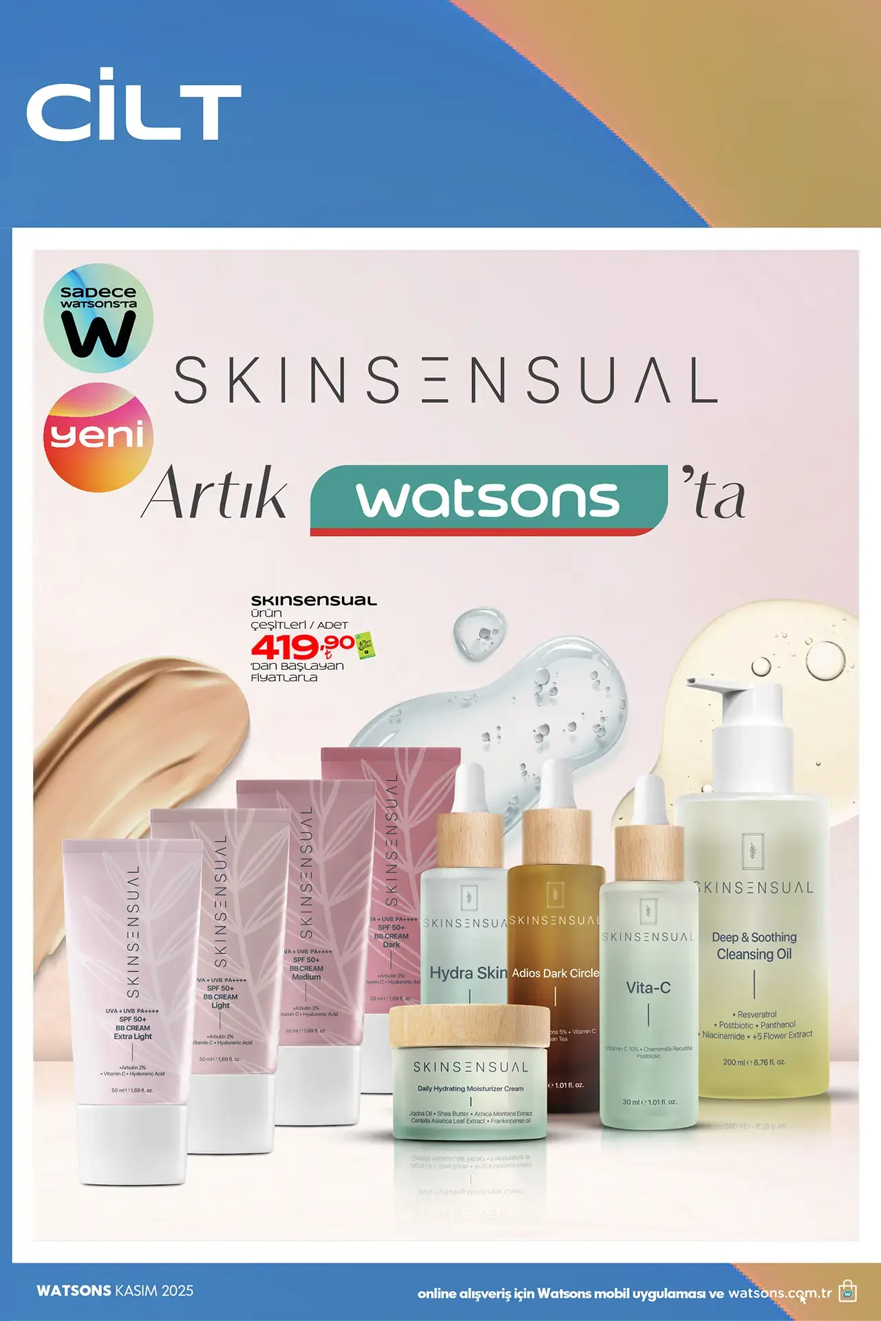 Watsons Kasım kataloğunu sıkıcı sıkıcı anlatmak istemiyoruz. Bu ayı dolu dolu anlatmak, indirimleri yaşamak ve yaşatmak istiyoruz. Ben Aktuel-urunler.com’dan Yasemin ve bu ay kataloğunu okumaktan keyif alacaksınız. Öncelikle Kasım ayı renklerin vals yaptığı, dokuların canlandığı, güneşin sadece ısıtma görevini yerine getirdiği ve ancak ışığıyla şov yaptığı bir ay! Peki Watsons Kataloğu? O da Kasım ayında tıpkı güneş gibi! Cebinizi sıcak tutan paraların azalmasına sebep olan ve ancak size getirdiği ışıltının tüm sene boyunca parlayacağı bir ay! Konumuza dönecek olursak; Makyajdan saç bakımına kadar güzelliği yeniden tanımlayan Watsons Aktüel kataloğu “Taze sıkılmış cilt bakımı” sloganıyla kataloğuna başlıyor. İndirim kodunun (31 Ekim-30 Kasım 2025) ek %10 indirim kazandırdığı bazı ürünlerin de sunulduğu bu hafta fırsatlarında 11.11 online alışveriş festivali de bir başka. Online alışveriş festivali bir tarafa; Kasım ayı kataloğu da bir başka! Şimdi gelelim kataloğun çılgınlıklarına…