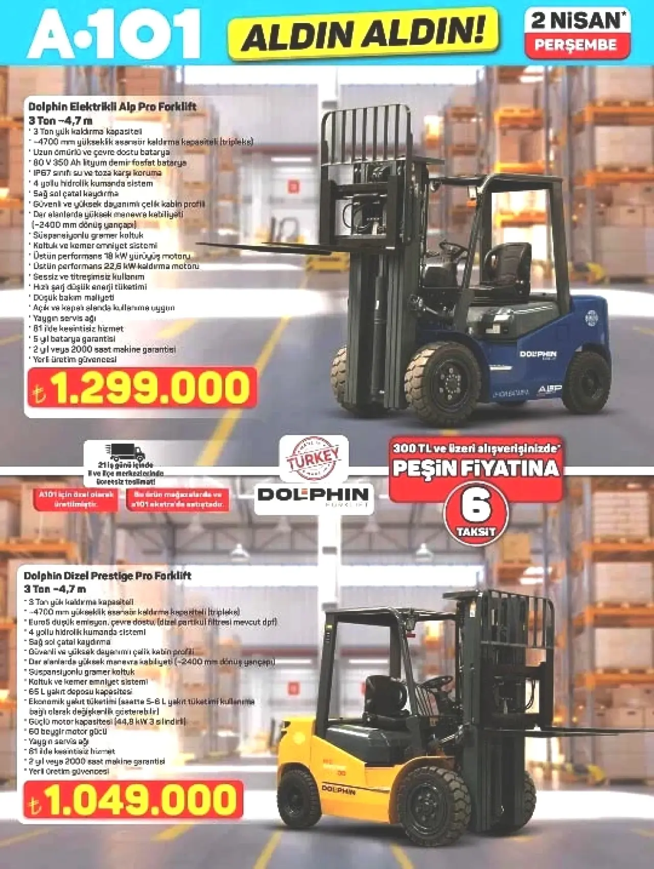 - Elektrikli Alp Pro Forklift: 1.299.000 TL