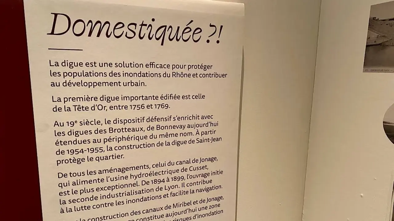 Hikaye Rhône nehrinin sol kıyısında başlıyor. Aqua Rize sergisi, Villeurbanne manzarasının her zaman asfalt ve betondan ibaret olmadığını hatırlatıyor. Arşivler, sellerle şekillenen ve özellikle Jonage Kanalı'nın yapımıyla insan zekasıyla dönüştürülen bir bölgeyi ortaya koyuyor .