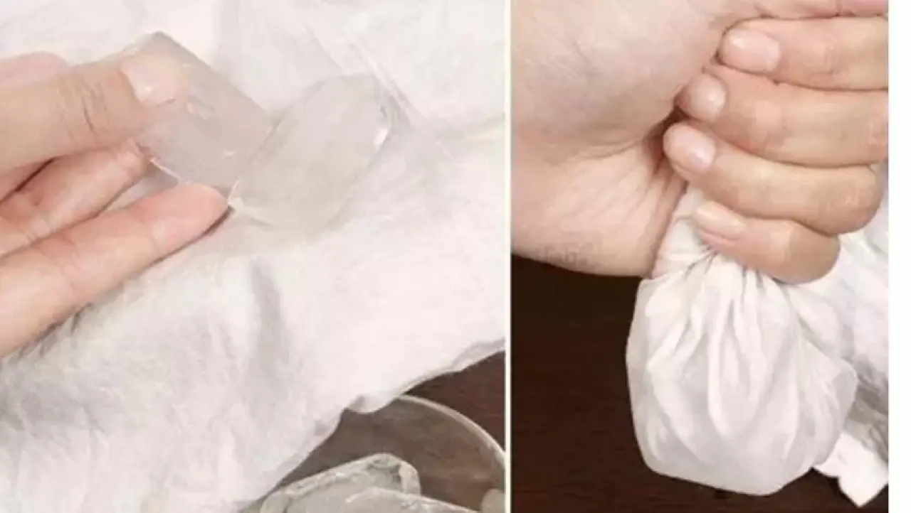1- Bir miktar buz küpü havlu veya pamuklu bir bezin içine koyun.