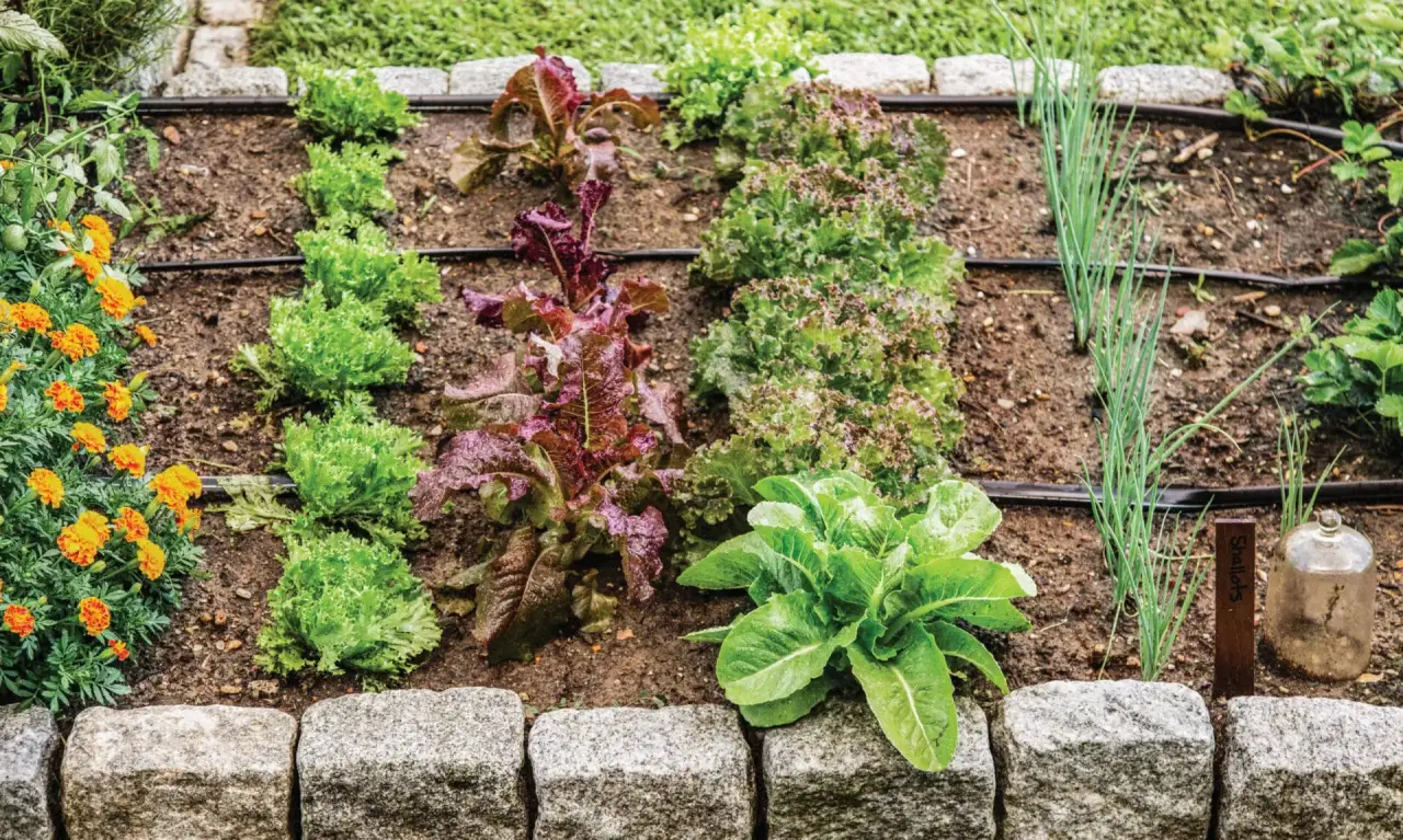 Ama önce Helen, yenilebilir bitkilerinin ihtiyaç duyduğu suyu alabilmesi için bir sulama sistemi kurdu. Her bitki sırasına yaklaşık 40 cm aralıklarla damlama boruları döşedi, böylece her sıraya belirli bir su kaynağı sağlandı. Helen boruları gizleme konusunda çok uğraşmasa da Jenn bunun kolay olduğunu söylüyor: Boruları toprağın hemen altına gömün ve sulama zımbalarıyla sabitleyin. Parça satın alırken zamandan tasarruf etmek için bir kit ( DripWorks tarafından satılanlar gibi ) alabilir ve sulamaları bir zamanlayıcıyla otomatikleştirebilirsiniz.