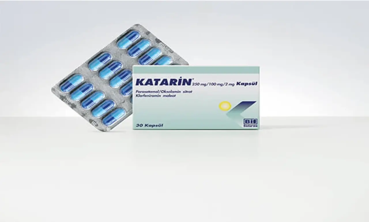 Katarin Kapsül Ne İşe Yarar? Katarin Kapsül Ne İçin Kullanılır?. Katarin Kapsül, üst solunum yolu enfeksiyonları için balgam çözücü, öksürük giderici ve ağrı kesici, ateş düşürücü olarak kullanılır. Katarin Kapsül 4 farklı etken madde içerir ve hepsinin etkisi farklıdır. İçerdiği parasetamol, ağrı kesici ve ateş düşürücüdür. Oksolamin sitrat öksürüğü keser, klorfeniramin maleat burun akıntısı, hapşırık gibi alerji semptomlarını azaltır. Psödoefedrin hidroklorür ise daha rahat nefes almayı sağlar.