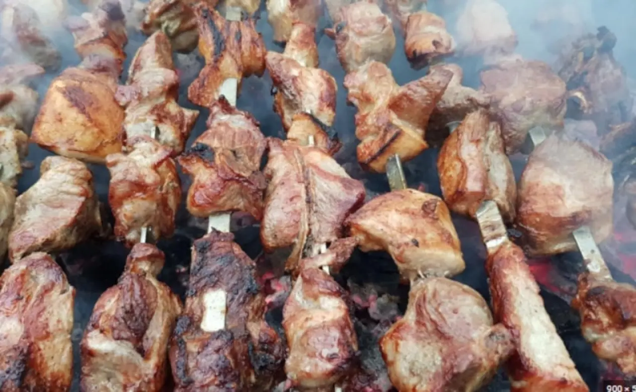 Ateş üzerinde pişirilen et şişleri, Gürcü mutfağının paylaşımlık yemeklerinden biri.