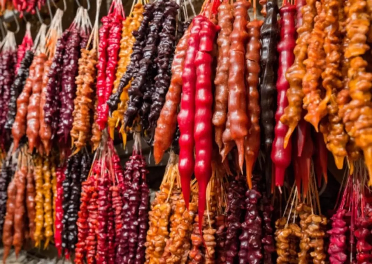 Ceviz ve üzüm özünden yapılan churchkhela, hem atıştırmalık hem hediyelik olarak tercih ediliyor.