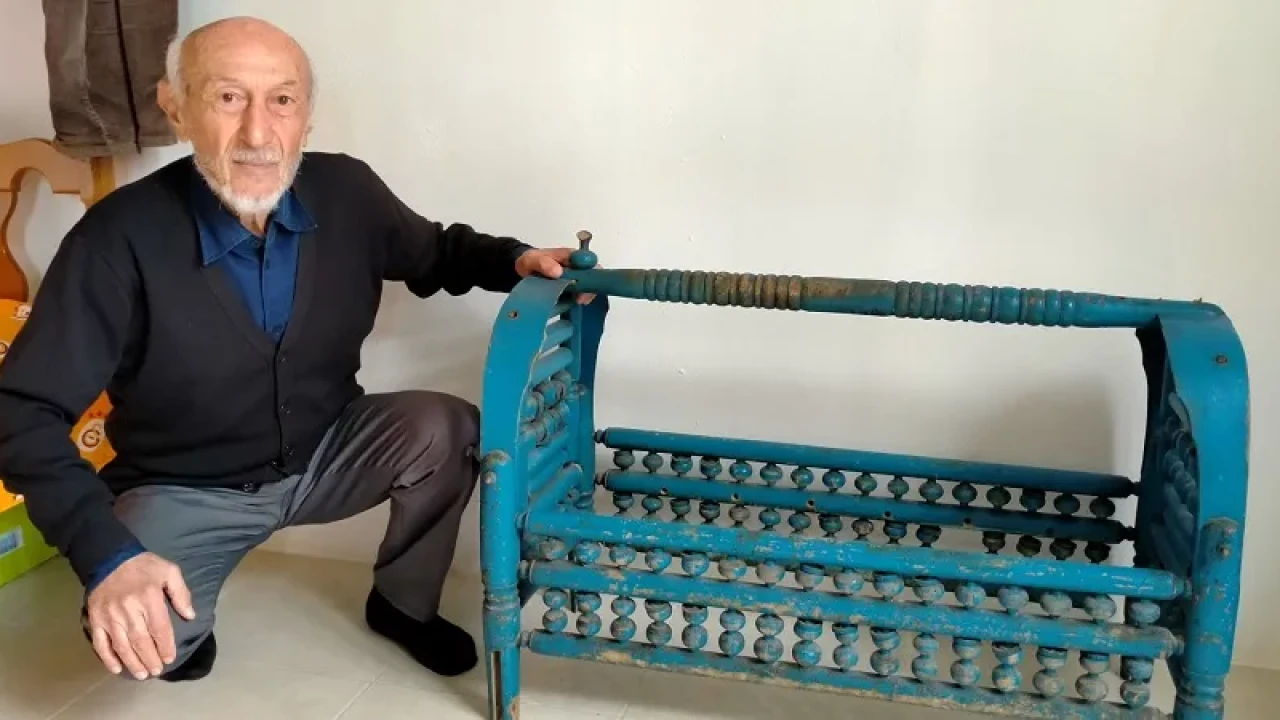 Emekli Orman Mühendisi Ömer Mete doğumundan sonra aylarca yattığı beşiğini koruyup muhafaza ediyor.