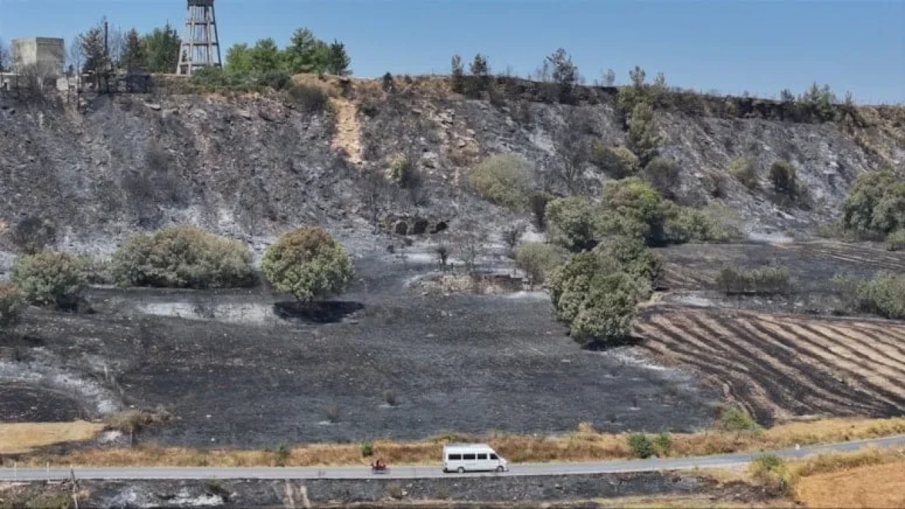 Çam ormanlarının yanı sıra makilik alanlar ile tarım arazilerinin de bulunduğu bölgede yangın sonrası yeşil alanların siyaha büründüğü görüldü.