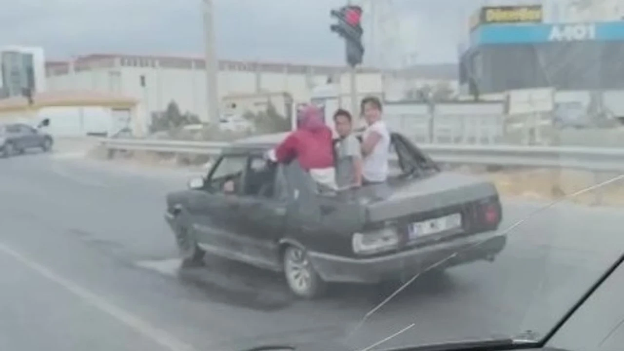 Hatay’ın Arsuz ilçesinde, arka camı olmayan bir TOFAŞ otomobilin arka kısmından dışarı sarkan çocukların tehlikeli yolculuk anları güvenlik kameralarına yansıdı. Korku dolu görüntüler sosyal medyada paylaşılınca, trafik ekipleri derhal harekete geçti.