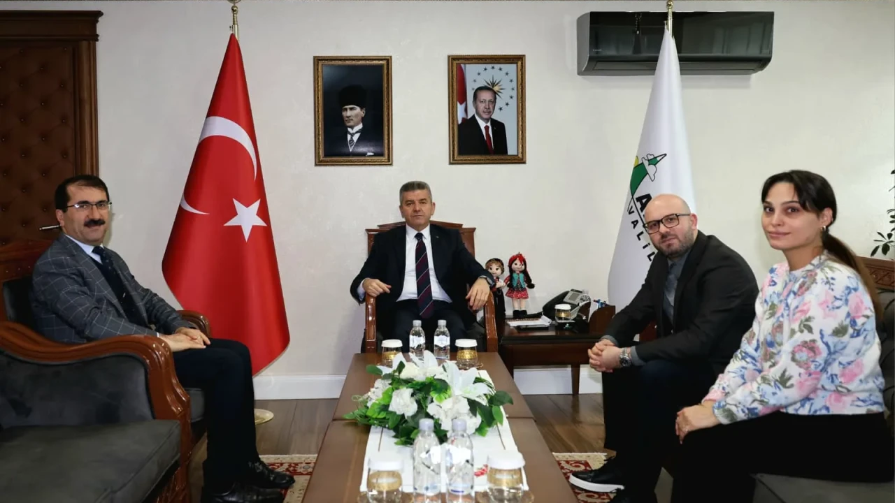 Artvin İl Millî Eğitim Müdürü Fahri Acar, iş insanı Orhun Peker ve eşi Melis Peker ile birlikte, Artvin’de eğitime sağlanabilecek destekleri görüşmek üzere Artvin Valisi Dr. Turan Ergün’ü makamında ziyaret etti.