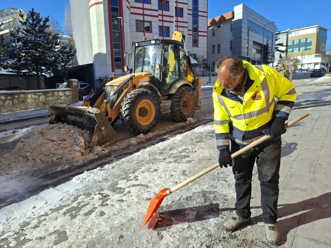 Yürütülen çalışmalar kapsamında cadde ve sokaklarda kar temizliği yapılırken, özellikle toplu taşıma kullanımının yoğun olduğu dolmuş durakları çevresinde kar küreme çalışmaları gerçekleştirildi. Ekipler, ulaşımda aksama yaşanmaması ve olası risklerin önüne geçilmesi için kent genelinde görev başında bulundu.
