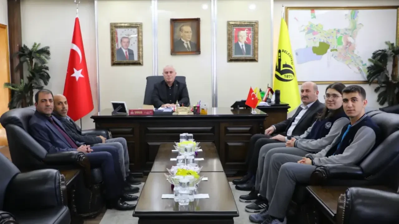 Bayburt Fen Lisesi Müdürü Ömer Coşar, Müdür Yardımcısı Tevfik Büyükkülekci, Okul Aile Birliği Başkanı Fatih Yazıcı ve 12. sınıf öğrencileri Taha Yasin Eren ile Sevginur Durmuş, Bayburt Belediye Başkanı Sayın Mete Memiş’i makamında ziyaret etti.Ziyaret sırasında Başkan Memiş, gençlerle bir süre sohbet ederek eğitim hayatlarına dair tavsiyelerde bulundu.
