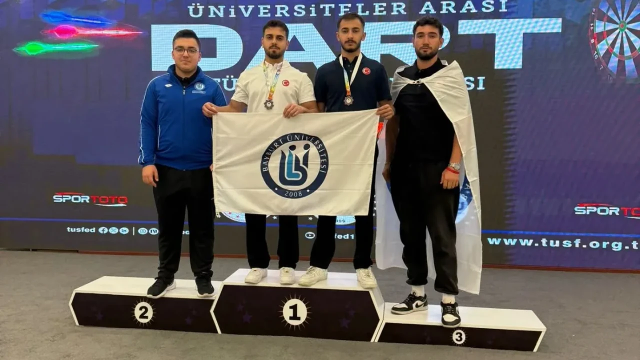 Türkiye Üniversite Sporları Federasyonu tarafından düzenlenen Üniversiteler Arası Dart Şampiyonası’nda Bayburt Üniversitesi öğrencileri önemli bir başarıya imza attı. Turan Delice ve Abdurrahim Doğan, Eşli Erkekler Kategorisi’nde elde ettikleri 3.’lük derecesiyle üniversiteyi başarıyla temsil etti.