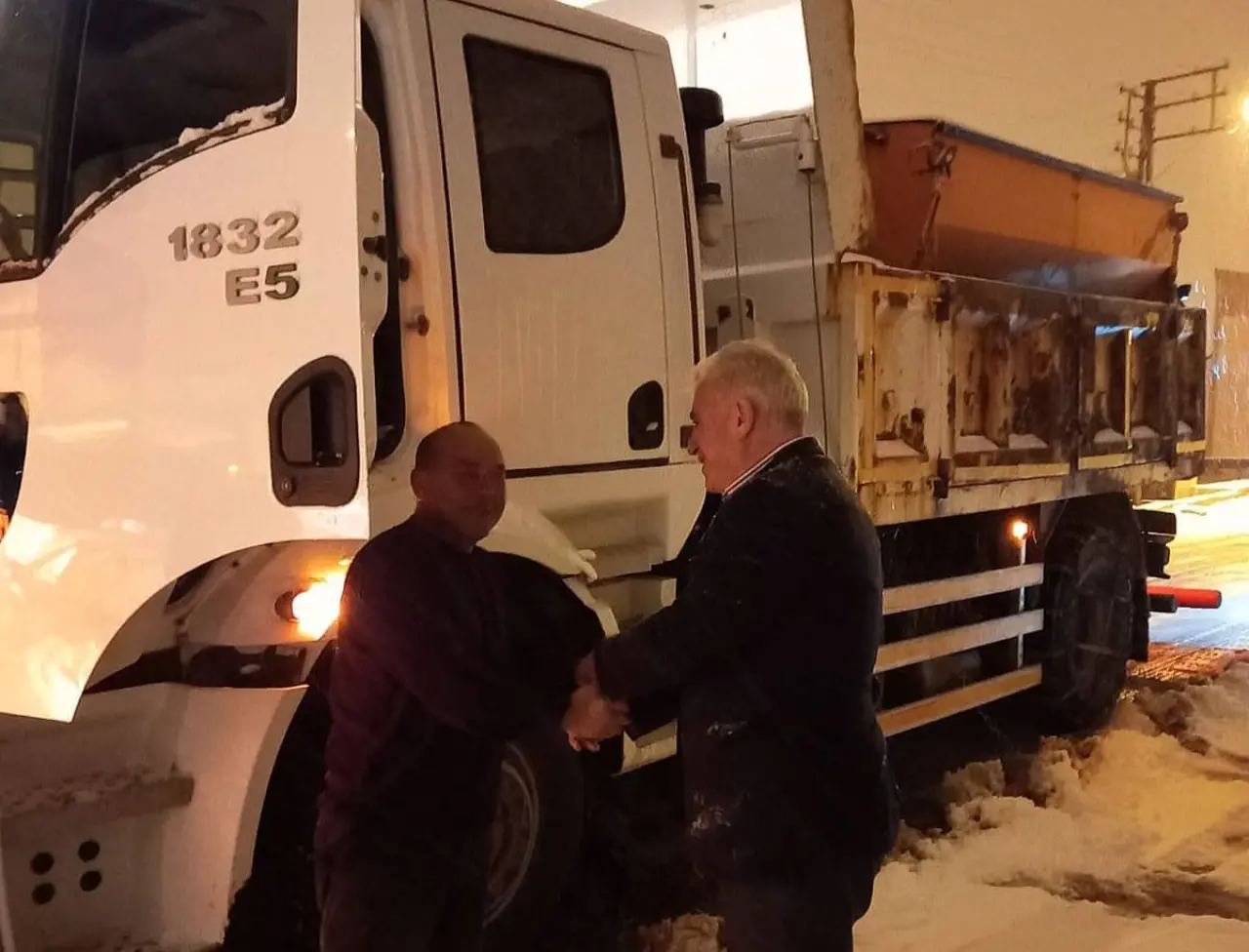 Bayburt'ta gece başlayan kar yağışı sonrası belediye ekipleri, kar temizleme ve tuzlama çalışmalarına hızla başladı. Başkan Mete Memiş, yapılan çalışmaları denetleyerek güvenlik önlemlerinin önemine dikkat çekti, ekibin özverisini takdir etti.