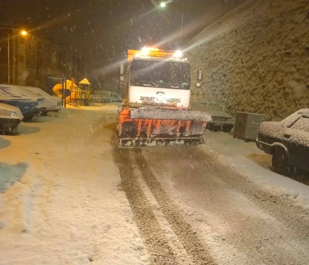 Bayburt’ta etkili olan yoğun kar yağışıyla birlikte Bayburt Belediyesi ekipleri, kar yağışının başladığı gece saatlerinden itibaren kent genelinde karla mücadele çalışmalarını aralıksız sürdürüyor. Olumsuz hava koşullarına karşı teyakkuz halinde olan ekipler, ana arterler başta olmak üzere mahalle yollarında kar küreme ve yol açma çalışmalarını gece boyunca devam ettirdi.